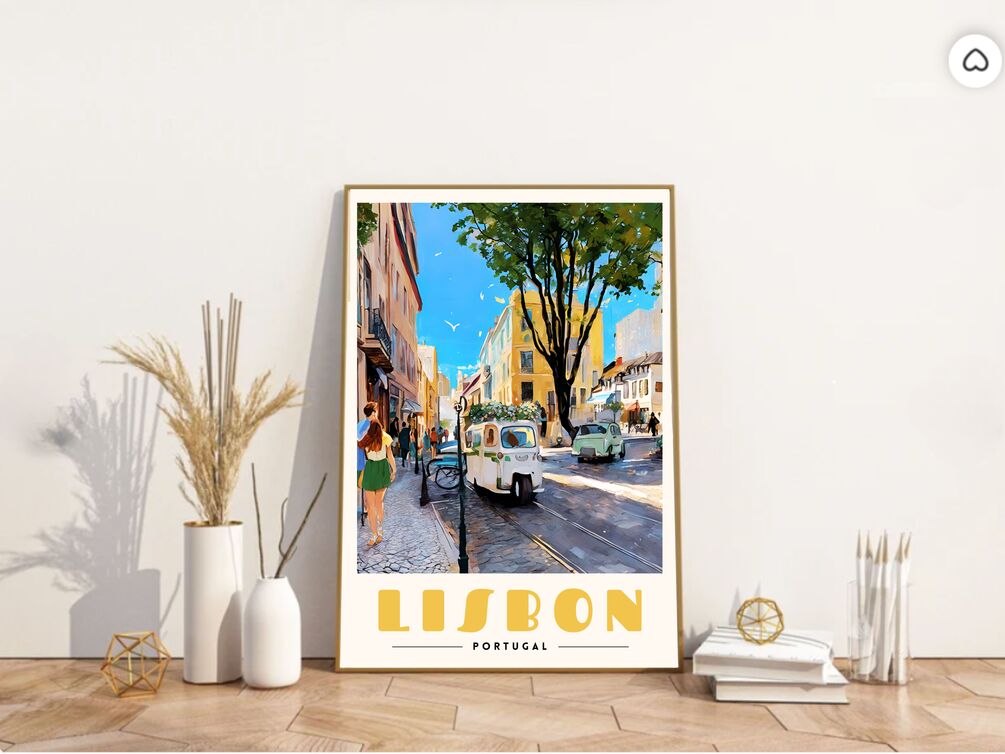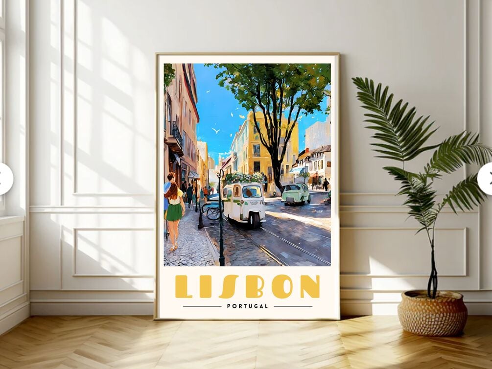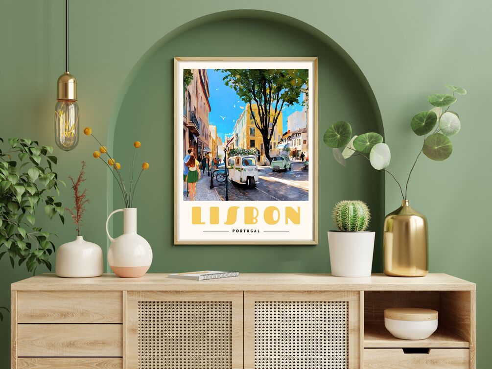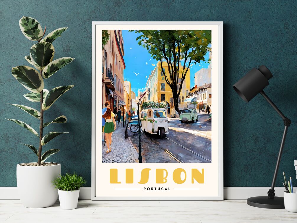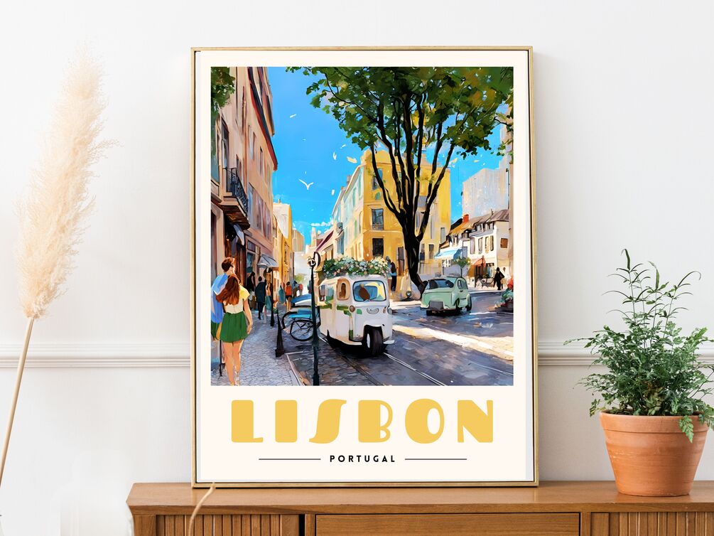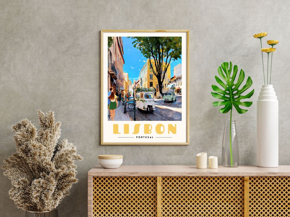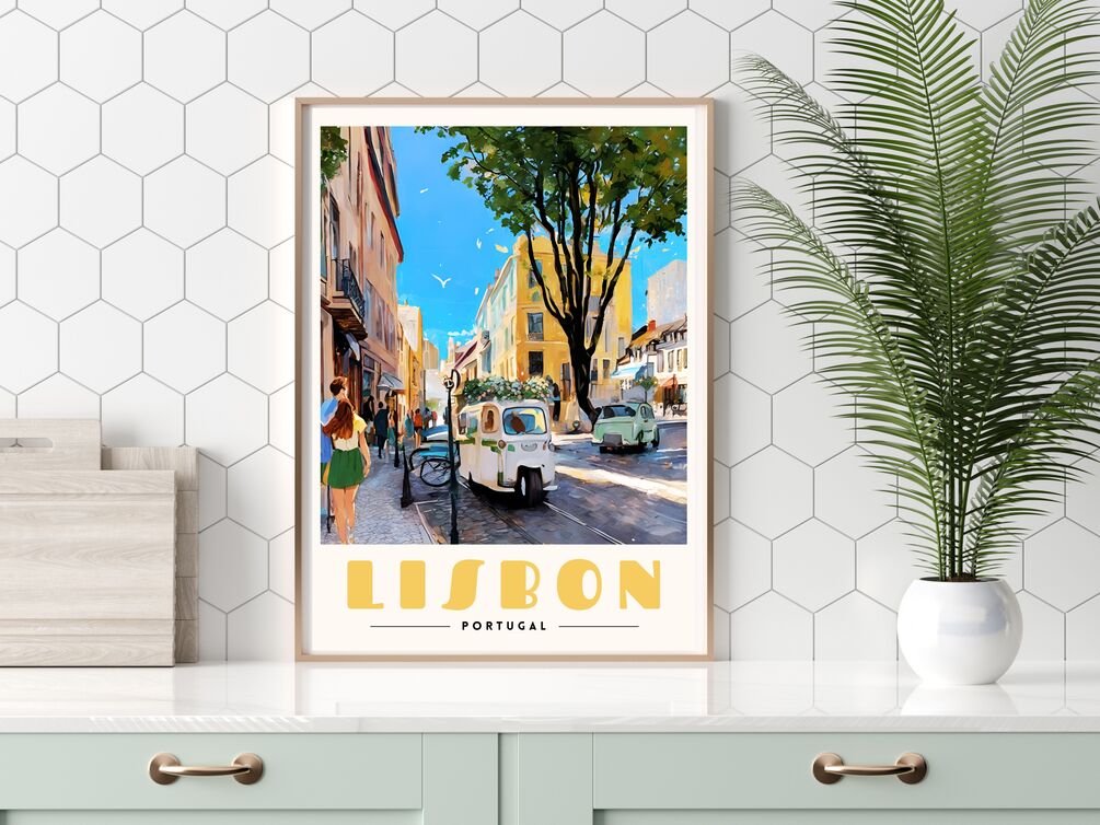 The "Lisbon Sunny Street" wall print makes a wonderful gift, perfect for home decor!