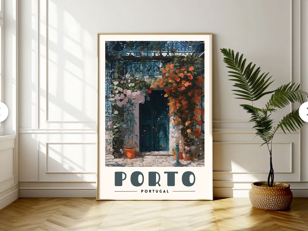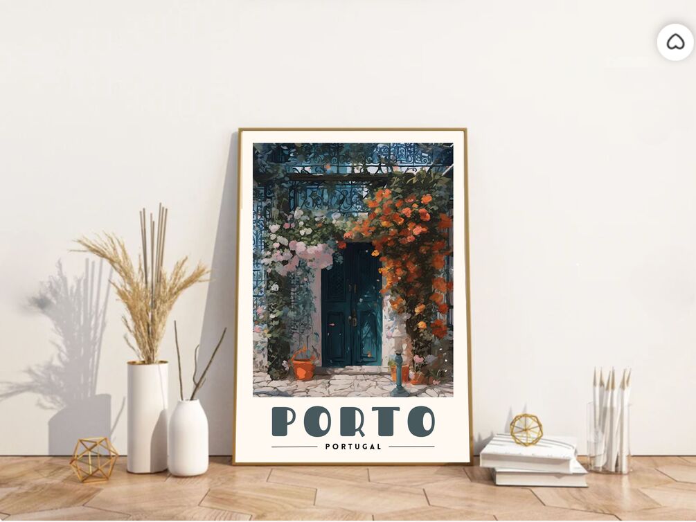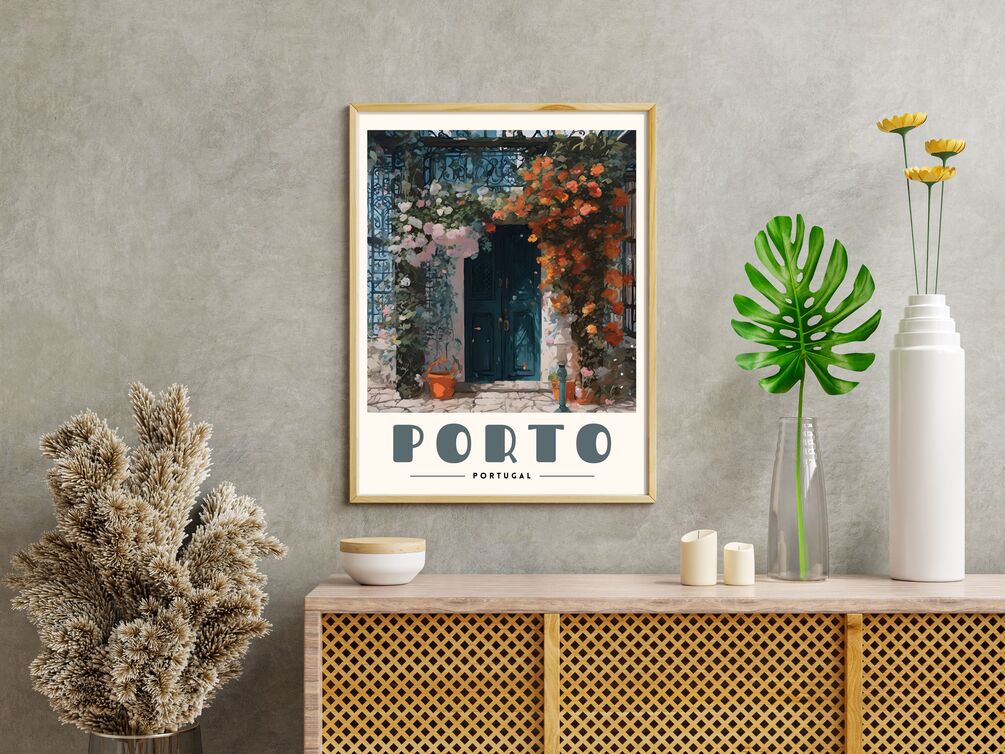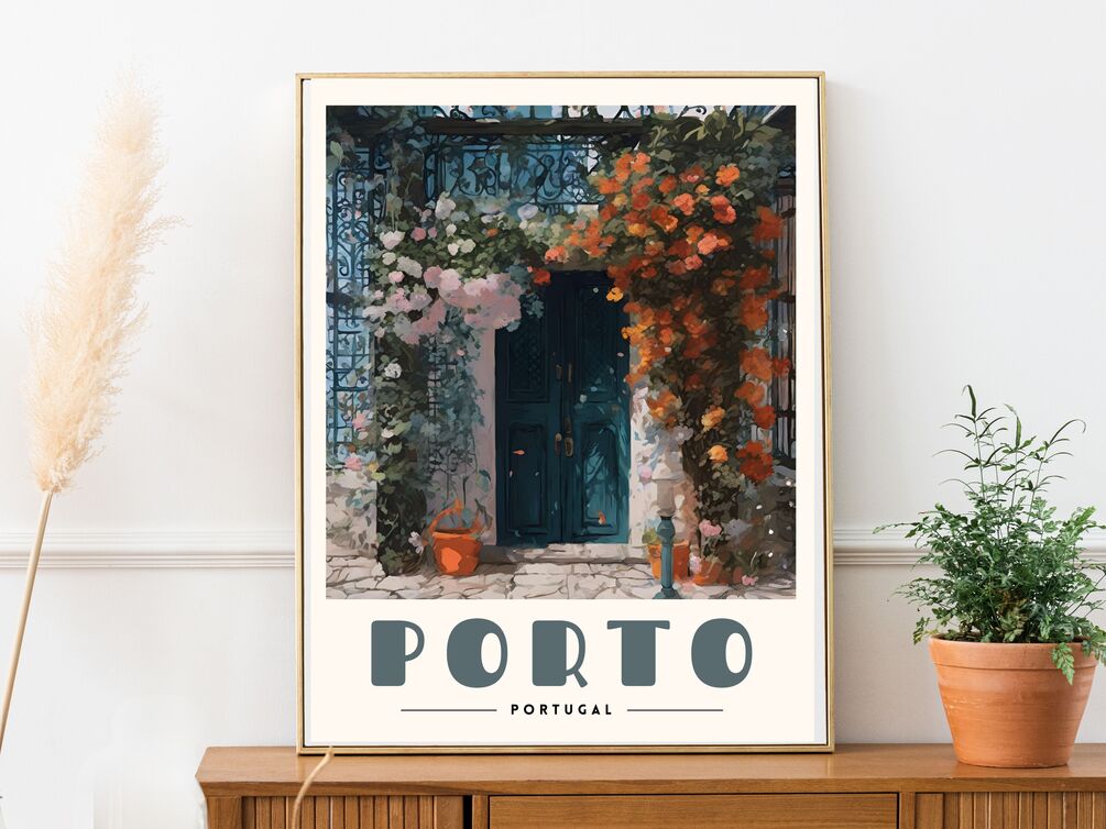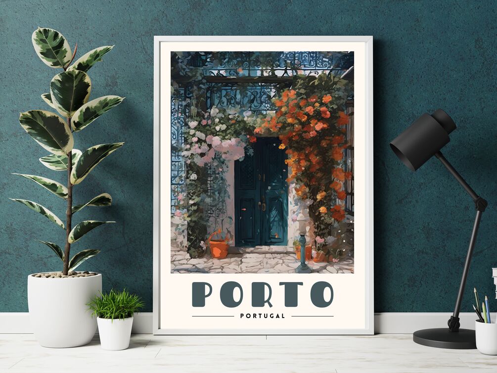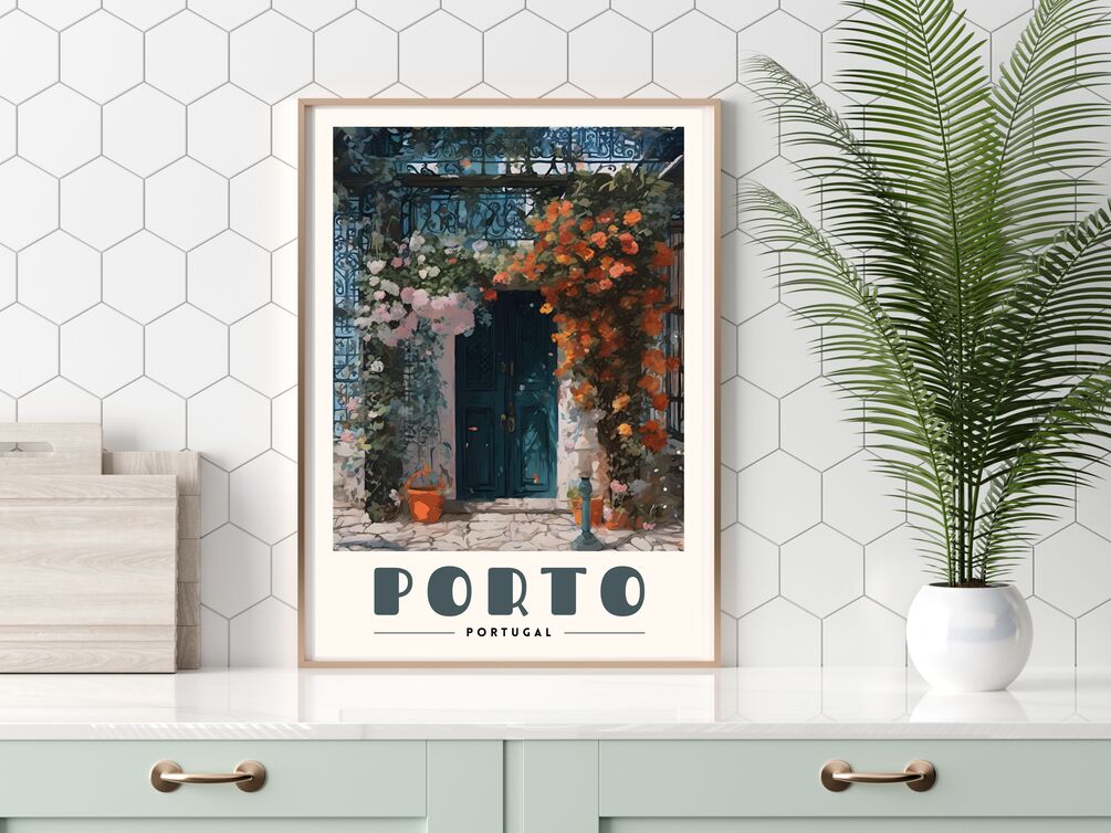 The "Porto Blue Flower Store" wall print makes a wonderful gift, perfect for home decor!